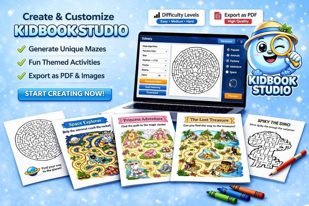 Kidbook Studio is an all-in-one cloud-based tool designed to help users create kids’ activity books quickly and easily without needing design skills. Instead of manually creating puzzles, grids, or layouts, the software automates most of the process. With just a few clicks, you can generate complete activity books filled with engaging puzzles, educational games, and interactive content designed specifically for children.
