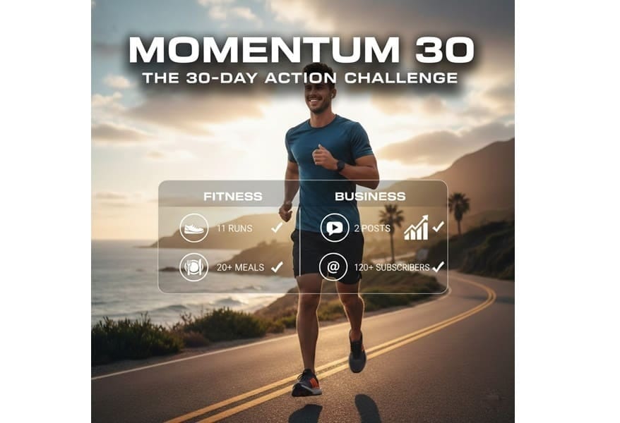 When I first explored The Action-First Vision Board, I wanted to test whether it could genuinely bridge the gap between visualization and execution. To do this, I created a project I called “Momentum 30”—a 30-day challenge designed to improve both my personal fitness and my content creation output.